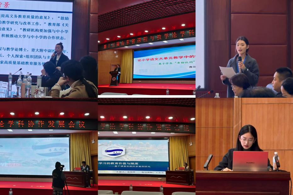 会议期间,王禧婷博士和小学教育硕士生王鑫钰分别作了大会主题报告发言。王禧婷博士以“大中小学协同教研:特征、价值、困境与突破──基于团队基础教育服务20年实践”为题,介绍了研究团队对大中小学协同教研的实践与思考;王鑫钰聚焦“智能时代课堂的认知重构与范式变革”,分享了团队对人工智能影响下的课堂改革研究。在分论坛中,李明超博士围绕“论小学语文大单元教学中的学习活动设计”,就学生在学习活动中身份的多样性进行了探讨;小学教育研究生姜晓媛以“小学课堂电子白板应用困境与优化路径”为题进行了汇报,反思了电子白板的应用现状;教育学研究生龙承杜基于国内外案例调查,对“AI赋能中小学学校教育”进行了讨论;教育学研究生张绮梦聚焦AI赋能教学,对“AI赋能中学英语课堂深度学习的促进路径”进行了探讨。
